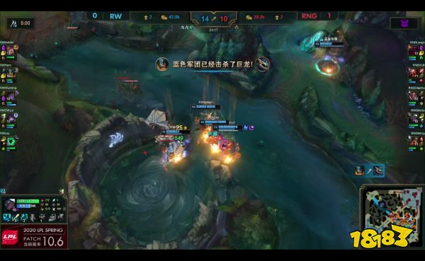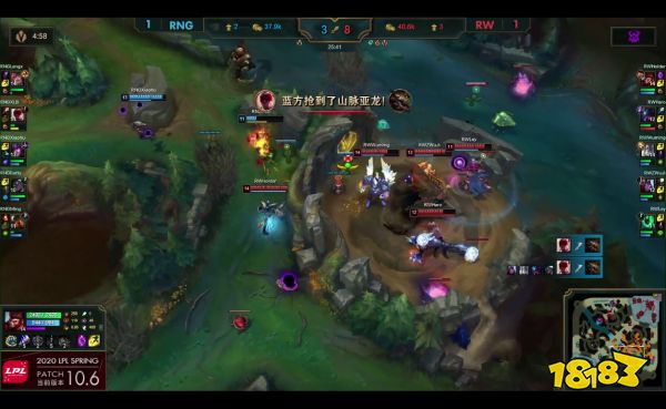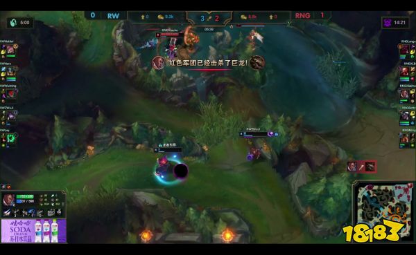 [18:30] RNG野区开到锤石,但被RW反打击杀两人,随后RW拿下风龙。