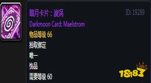 暗月卡片漩涡:饰品2,出自暗月马戏团套牌收集兑换,无法附魔。