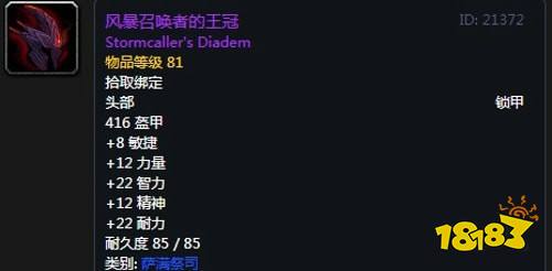 风暴召唤者的王冠:头部,出自安其拉副本任务获取,推荐附魔巫毒的警觉。