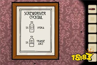 通关攻略第一部分首先去第三个房间,点击男人时说要喝饮料,调按照右上方提示调好饮料给他喝,取得道具螺丝刀