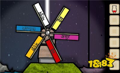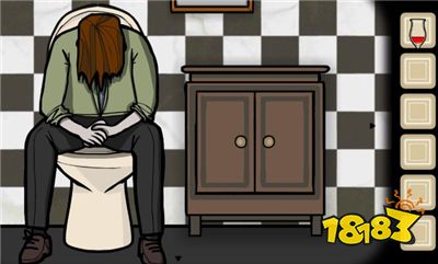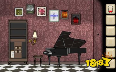 把黑色方块放好后,拼好头部,接着观看下一个表演,出现一个风车,上面对应的颜色会出现对应的字符,根据第一个房间的提示和第四个房间的提示拍好风车顺序。解开迷题后,我们接着去第一个房间把厕所里的人拍醒,然后再回到第二个房间做电梯