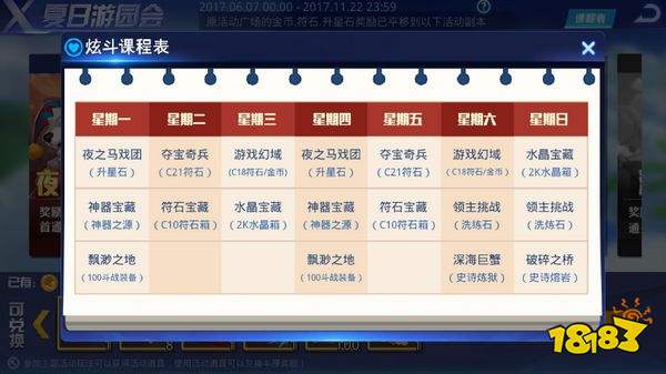 2、马戏团、夺宝、游戏幻域、领主挑战一周各4次,一次可以获得15张史诗冒险卷;