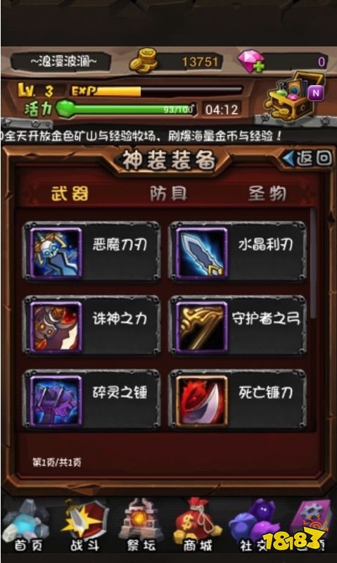 装备介绍可以去金色矿山和经验牧场刷经验和金币获得更好的装备,这是提高战斗力的关键。当然RMB玩家也可以直接在商城中购买。