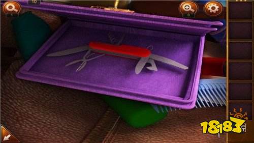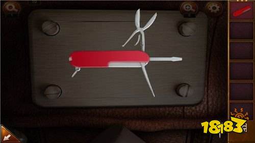 7、单击军刀,点击剪刀,剪开绳子,点击发现出口,逃脱。