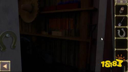 7、点击中间的喷泉,放上马蹄铁根据储物室门上的提示调整,打开盖子。