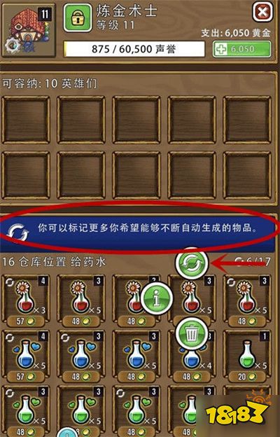 如果有自动生成机会的话,就会在页面中间出现下面这个蓝色的提示。点击物品,选择这个循环图标点击,当这个物品左上角出现一个循环小图标的时候,这个物品就可以在售卖完之后自动生产上架。