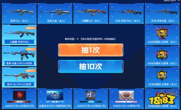 雷神-白鲨-CFPL冠军皮肤(永久)、毁灭-AG-CFLS15冠军皮肤(永久)、AG名片+AG喷漆(7天)