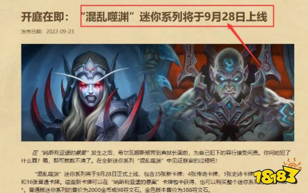 炉石传说2022纳斯利亚堡的悬案的迷你系列包混乱深渊会在2022年9月28日上线。