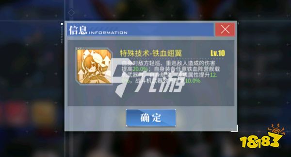 技能3“特殊技术-铁血翅翼”,自体对轻巡、重巡敌人伤害提升20%,装备任意铁血舰载机时,自身航空、装填属性提升12%,战斗机武器效率提高10%。简单直接的增伤还是香的,但150%的战斗机效率配上只有2架战斗机,还是不够看的。