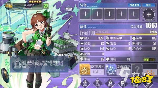 至于秋月律子,常规用途和樫野差不多,但生存有所欠缺。然后我们谈谈定安,如果这一次不推出新的运输用装备的话,那么给定安搭配三种紫色的兵装补给刚刚好。
