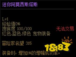 除了增幅秘药外,增幅宠物也是玩家增幅不可或缺的好助手。目前玩家可以在周边商城购买获取伊希斯,在之前的阿拉德探险记第3季活动获取奖励迷你丝丝,提升巨龙地图冒险等级解锁迷你阿莫西斯塔斯,由于伊希斯价格依旧高昂,所以相比之下,人人都有机会白嫖的迷你阿莫西斯塔斯就是玩家必备获取的宠物了。