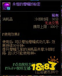 玩家在公会NPC守护精灵商店,使用公会硬币兑换增幅秘药。使用增幅秘药可以提升增幅成功的概率。玩家可以通过工会活动、通关工会副本等方式获得工会硬币,由于获取简单,强烈建议玩家在增幅时一定要使用该道具。商城同样出售装备增幅/强化秘药,玩家可以直接购买。