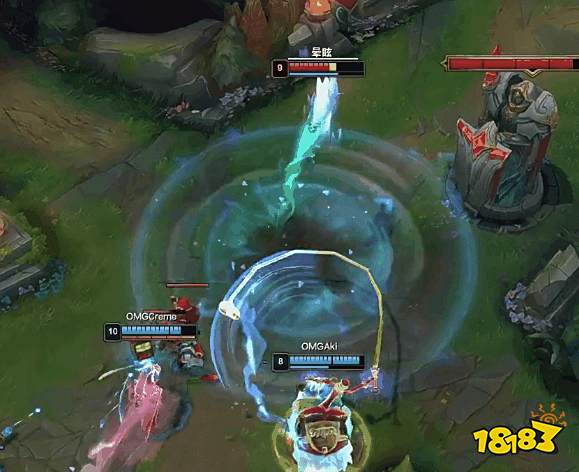 【10:14】OMG上路三人推进一起吃塔皮,剑姬不敢去看质感远处闻经验,猴子放出先锋上路撞掉NIP一血塔。