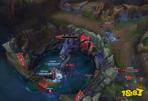【42:29】NIP下路推进拔掉OMG二塔,NIP冲上OMG高地稳扎稳打,兵线大军压境,猪妹空R塞恩反手开团,NIP击溃OMG扳回一局。