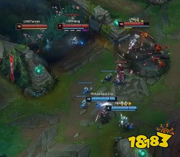【17:06】LNG中路继续带起节奏,安妮拍死韦鲁斯,酒桶炸掉卡尔玛,LNG推掉TES中路一塔。