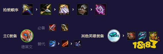 德莱文:饮血必备,科技枪跟正义都代替不了饮血的护盾效果,德莱文高血量饮血的盾很厚。然后尽量做无尽提升爆发,第三件羊刀轻语巨杀都行,看外面情况出,有啥做啥,飞天德莱文直接杀后排,其实没那么需要轻语,如果外面斗士多3星多可以优先一点巨杀。然后就做机器人的防装,一切防装都行,龙牙,反甲,狂徒,救赎,冰甲,石像鬼等,有啥做啥。