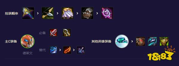饮血必备,第三件羊刀轻语巨杀都行,看外面情况出,有啥做啥,德莱文直接黑客杀后排就可以。