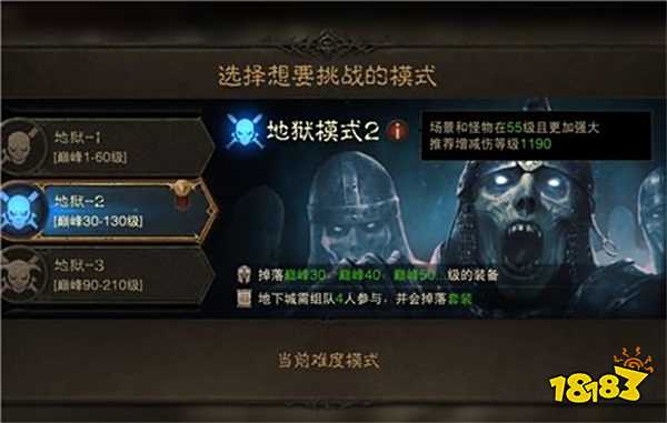 1、在游戏中怪物的难度等级分别是:普通、地狱1、地狱2、地狱3.