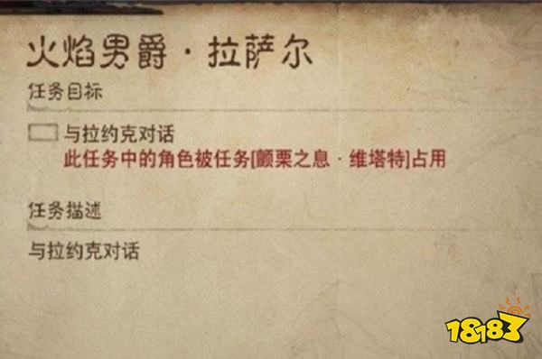 暗黑破坏神不朽任务角色被占用解决方法:角色被占用是游戏的bug,正常是打完火男后才会刷出来冰女的任务;这个角色被占用的bug,玩家只能等2000战力去过任务或者找大佬带了。