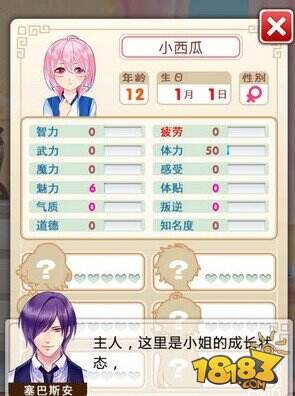 都说身体是革命的本钱,所以我们要及时关注和关心萝莉的身体健康状态,在状态中我们可以观察到她的智力、疲劳、武力、体力、魔力、感受、魔力、体贴、气质、叛逆等等数值,完成相应的任务要求,便可提升它的额度,让小萝莉健康快乐的成长是我们的最终目标。