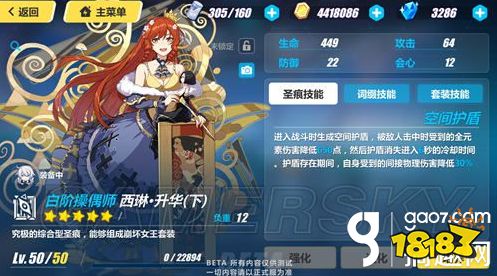 空间盾牌:当进入战斗时产生一个空间盾牌,被敌人击中的总元素伤害减少650点,盾牌消失到6秒的冷却时间。在盾存在期中,其自身间接伤害减少了30%。