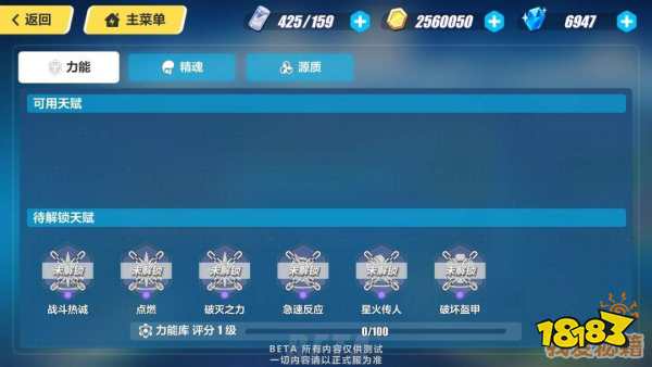 在天赋库系统中,天赋被分成了力能,精魂,源质三部分,大部分天赋效果只适用于人偶自身。其中力能大部分与物理输出有关,精魂大部分加增益效果,源质大部分与元素输出有关。每种天赋都需要对应的特定材料才能解锁与升级,不同天赋间材料不通用。