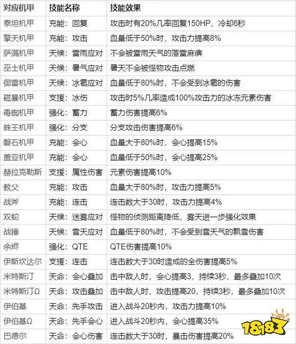 实战增益型的比较推荐米特斯汀Ω(最高叠加200点攻击面板)、伊伯基(进入战斗前20秒提升攻击力)、赫拉克勒斯(提高元素伤害)。泰坦机甲的几率回复HP对续航也有较大帮助,可以考虑携带。