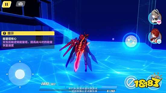 特斯拉笔记:在能源空港发现了图中的紫色装置。进入装置范围会让能量迅速流失,但是在进入虚数空间之后可以进行交互操作,让装置提供能量,加快战斗中能量的回复速度。