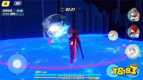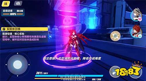 在下一个定位点战斗时,发现实验体“铁血”可以在自己周围生成一个时空减速区。时空减速区可以在虚数空间内通过击破白色光圈打破。