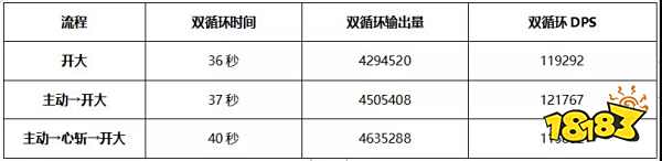 第一种流程虽然使大招吃到了牛,但却忽略了倍率能与大招媲美而且还几乎是瞬发的主动,(主动1500%,大招1600%),使得总伤害量最低。优点是启动最快,爆发最快,适合伤害溢出抢时间分的情况。