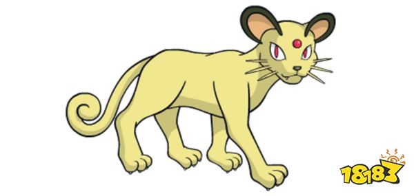 猫老大(28级时进化而成。)(伽勒尔地区的唯一一只猫老大需要先用加勒尔喵喵在草路镇的草路竞技场里面的一个小孩交换获得一只普通喵喵“金小判”,然后升级进化就行了。)