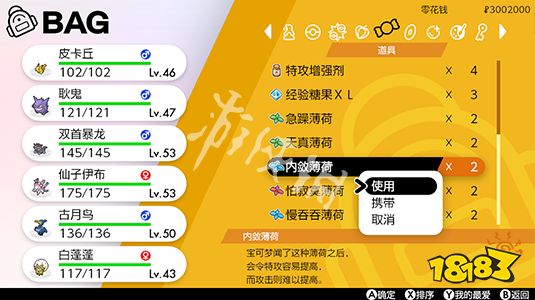 “薄荷”是在本作中首次登场的道具,它能使宝可梦容易成长的能力产生变化。宝可梦拥有各自的“性格”,不同的“性格”对应着它们容易成长的能力和不容易成长的能力。使用“薄荷”之后,能力成长的难易度似乎会发生改变。此外,即使使用“薄荷”,宝可梦的“性格”也不会发生变化。