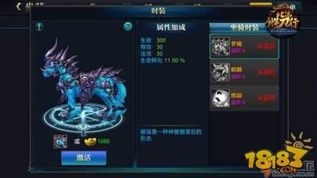 贵为天上瑞兽的麒麟从天而降,成为你的坐骑。在《北凉悍刀行》中,虽然只有马匹可以骑乘,但你可以为它穿上麒麟时装,指挥座下麒麟,威武霸气,纵马千里厮杀,而其属性加成也非常可观,生命+300,物攻+30,法攻+30,物攻转化11%,法攻转化11%,瞬间化为战场杀神!