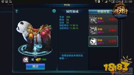 相信很多侠士都在游戏中看到了熊猫坐骑,而深得萌妹子们喜欢的熊猫坐骑,同样也让重视数值的汉子们垂涎三尺,这款阿竹同款的熊猫时装,生命+300,物攻+30,法攻+30,物防转化11%,法防转化11%,这样逆天的属性附加,简直让你在PK总无往不利。