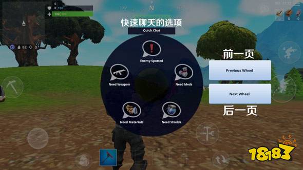 由于目前移动设备还不能语音沟通,所以有时候需求道具,队友根本不知道。这时候我们点开感叹号后,选择前一页,也就是英文“Previous Wheel”。