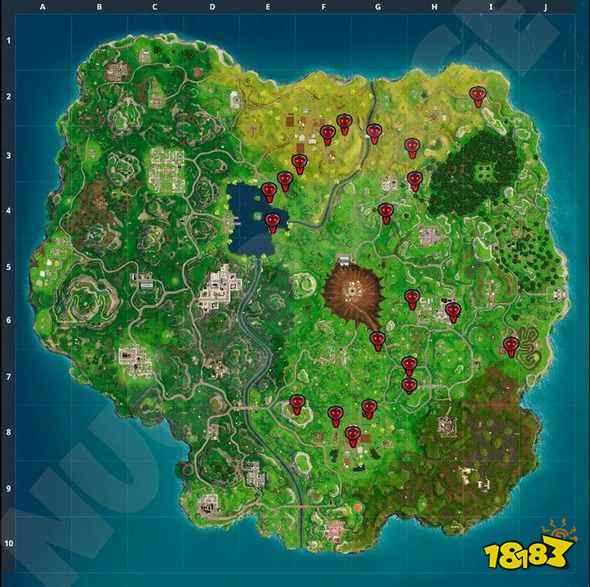 Reddit上一名名为‘NugSponge’的网友发布了一张关于地图上苹果坐标的地图。如果你非常急切于想品尝一个产自堡垒之夜岛屿上的苹果,可以尝试去这些地方。