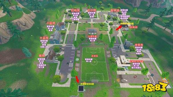 足球场:在你准备选择降落公园的时候,你应该关注一下公园落了多少人,这个点有没有宝箱,人如果多的话,优先选择房区,把公园打下来在开这个宝箱也不迟!如果公园人不多,这个保险位置要不要选择首先开!EMMM,看你自己的选择吧!