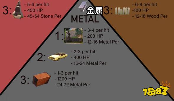 Reddit用户 SaltySnailComics 制作了一个列表,列出了每种材料要销毁的三个最佳对象。