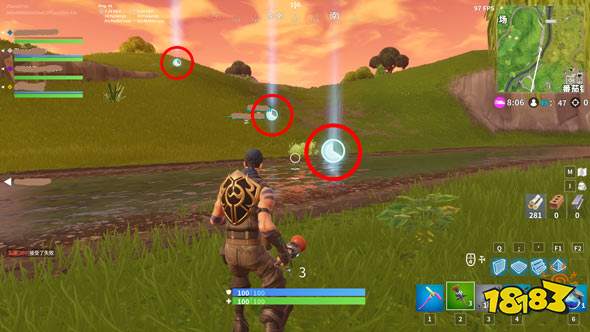 激活计时赛后,在这附近的位置会出现下图这种白色光圈,光圈里面是时间。一共会出现8个,要在时间耗尽之前把附近的所有光圈触碰到,才算是任务完成。