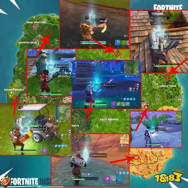 棕榈天堂附近、零售商店、孤独小屋比较简单,只需要通过搭板就能完成