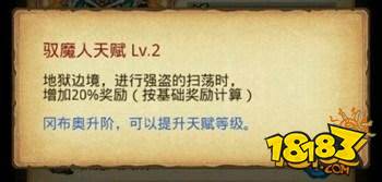 驭魔人天赋 :地狱边境,进行抢到的扫荡时,增加20%奖励(按基础奖励计算)