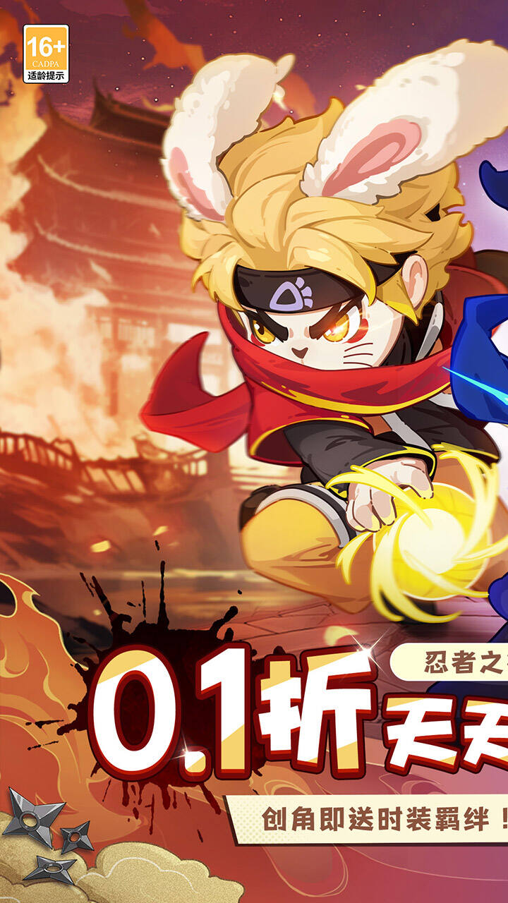 4、轻量化养成 + 角色收集,低肝高回报:支持多属性兔忍角色收集,通过闯关掉落装备碎片合成进阶,角色升星即可解锁全新忍术和外观,搭配 0.1 折折扣,无需高额投入就能拉满战力;离线挂机自动积累经验和资源,碎片化时间轻松养成。