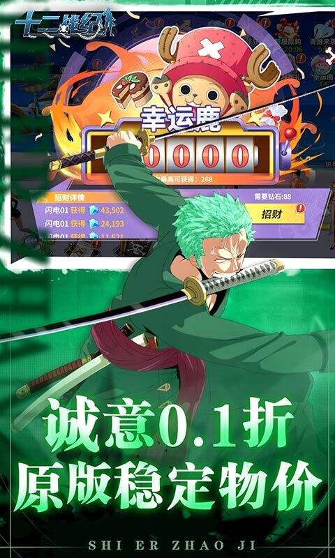 《十二战纪》是一款海贼王题材的卡牌对战游戏,永久0.1折充值,尽享超低折扣;上线即领5星路飞;连续登录领取SSR罗宾、SSR女帝;首充领取UR艾斯!经典还原海贼王动漫人物角色,剧情内容完美还原了动漫,让玩家体验到全新的游戏乐趣玩法!羁绊不灭,崭新的航海探险之旅等你来!
