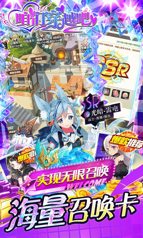 《咱们穿越吧(0.05折福利爆抽)》是一款全新的二次元美女卡牌回合制手游,上线就送648充值卡*100、水火风光暗高资五星英雄还有满级VIP;全场充值全部0.05折,所有商品超低折扣,并且还有送代金券,可抵充值档位。还有美人公寓助你无限召唤。不肝不氪得全新二次元回合卡牌,等你来发现!赶紧加入战斗吧!