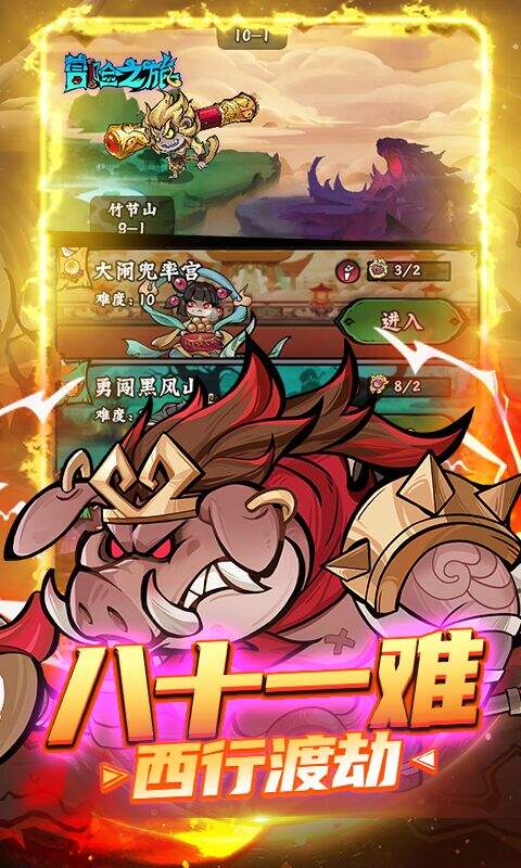 《冒险之旅(免费版0.1折)》本游戏是一款玩法简单的放置类RPG游戏,基于西游记构建了一个虚拟世界,玩家可以扮演不同的取经人,获得耳熟能详的神兵法宝,学习各种神通法术,结识形态各异的同伴,在各种玩法中降妖除魔。