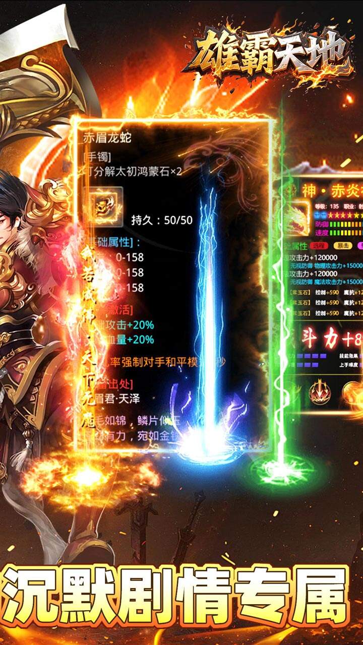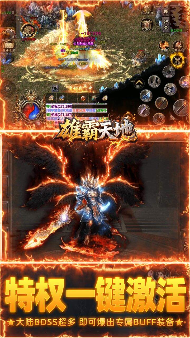 《雄霸天地(战士专属大极品)》BOSS信息:从一大陆开始BOSS超多 即可爆出专属BUFF装备,背包神器特殊切割称号,元素神装图纸。超级技能:[倚天辟地][护体真气]【龙影剑法][死亡之眼]。超多剧情:一大陆 至七大陆(涵盖击杀任务,收集任务,提交任务)剧情优化复杂项,奖励丰厚 货币 道具材料属性背包专属!不卡大陆【一大陆 下至八大陆 无付费条件,均BOSS爆]不卡大陆【一大陆 下至八大陆 无付费条件,均BOSS爆不卡大陆【一大陆 下至八大陆 无付费条件,均BOSS爆]。特色BUFF:对怪切割,刀刀切人%,失明,减速,变猪,变妖,囚禁等。散人:功能灵符均为通用,BOSS产出大量实物,非礼包服,元宝材料均靠收散人玩家产出的资源!!!日常活动:财富盗贼 渡劫的魔王 全民奇遇跨服地图(多活动)跨服攻沙(激战)。长久版本福利多多【此版本长久线路非礼包服福利多多迎君体验]。