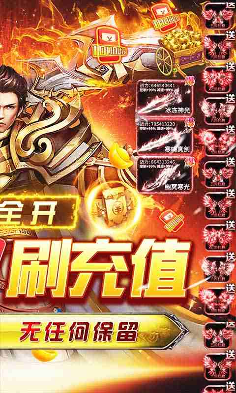 1、创角福利:上线送反伤神宠、千万年魂环,全套神器,开局直接起飞! 2、充值比例1:1000,每笔尊享超高额外返利! 3、打怪爆红包:击杀任意BOSS均有几率爆出红包,散人0氪爽通关! 5、免费送顶赞:做任务免费激活满会员,红包还能激活游戏内贵宾特权,真正的不花一分钱! 6、特色大陆:游戏内每个大陆都有不同特色,给您全新的传奇体验!