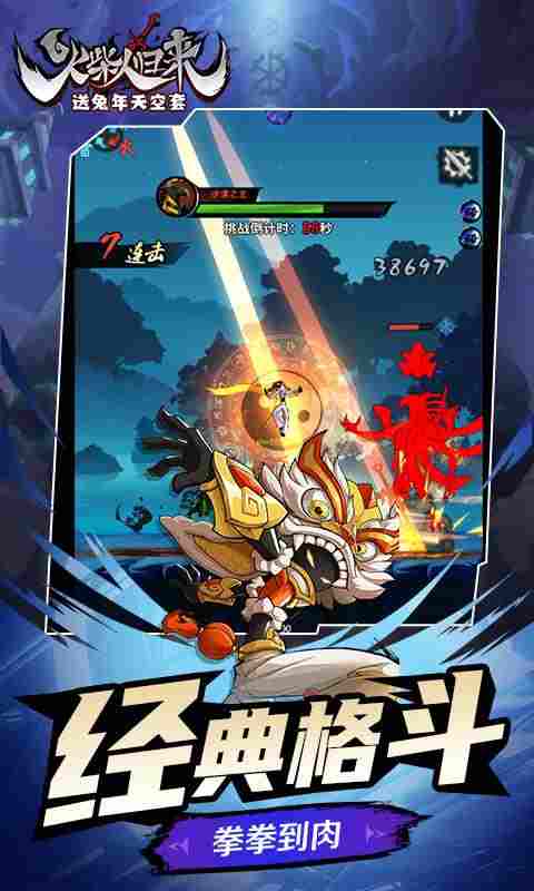开局直接天空套!不玩套路!上线送百年魂环;魂环加身!战力翻倍!开局送GM修改器;直接修改开局技能,直接9技能开局,轻松割草,福利为王!!!本次《火柴人归来(送兔年天空套)》归来福利来袭;仍旧以火柴人系列作品拳拳到肉的极致格斗体验为核心玩法,并在前作的基础上将横版升级为竖版,大大简化了操作。同时,在前作基础上,本作的画风再次进行了升级迭代,在传统的火柴人的剪影画风上融入国风元素,并能通过不同的时装搭配打造你的专属火柴人。
