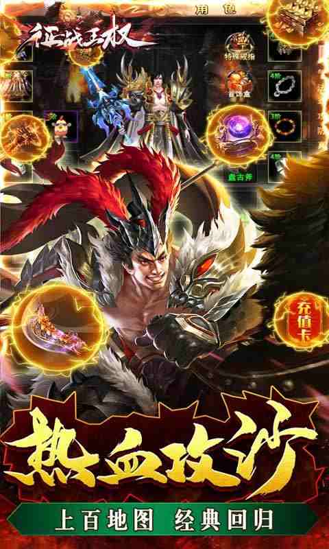 《征战王权》是一款精心制作的单职业三国题材超变传奇手游,上线就送充值卡,打怪也爆大量充值,福利超满,游戏中还有大量三国武将等你来体验,打怪爆充值。超高爆率,刀刀光柱,散人称王,2023最爽超变版本!