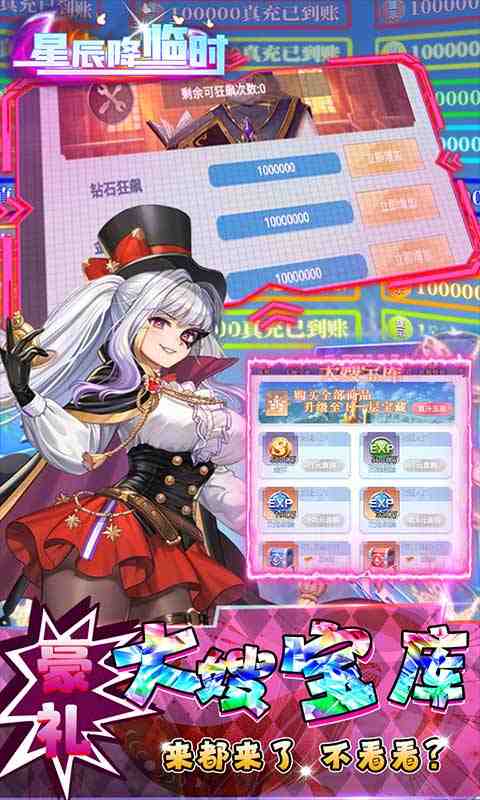 好玩的放置游戏,狂送不解释!《星辰降临时(AI免刷充GPT)》上线送五个十星随机英雄礼盒,快速推图。福利提升1:上线送10000现金券,GPT免费刷充;福利提升2:主角专属身份任务,狂送提额券,免费狂冲海量钻石;福利提升3:GPT问答中心,再送100次资源自选,立即增加秒到账,不用担心资源不够用了!